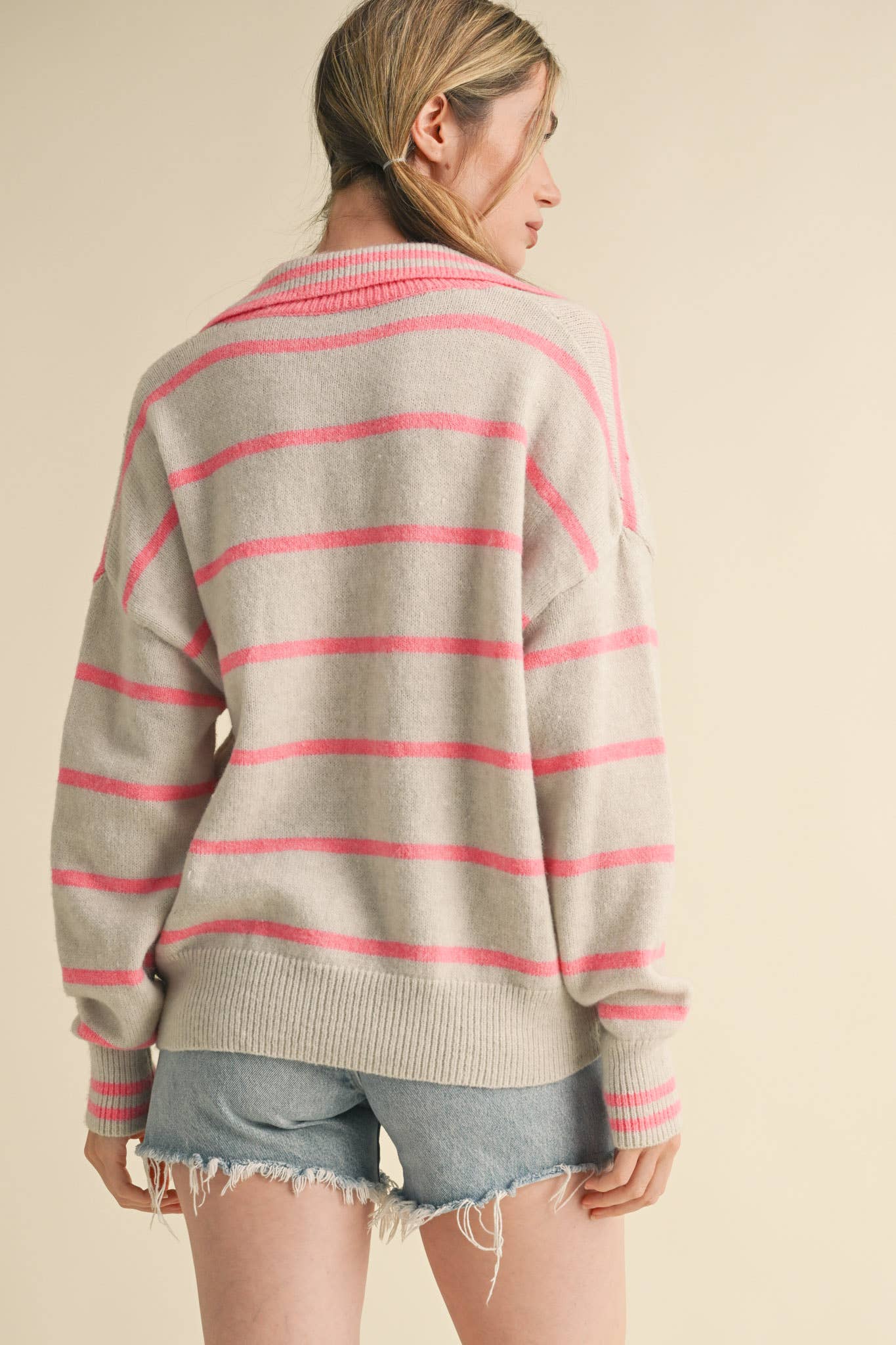 Lindsey Striped Collar Sweater Candy Pink/Gray