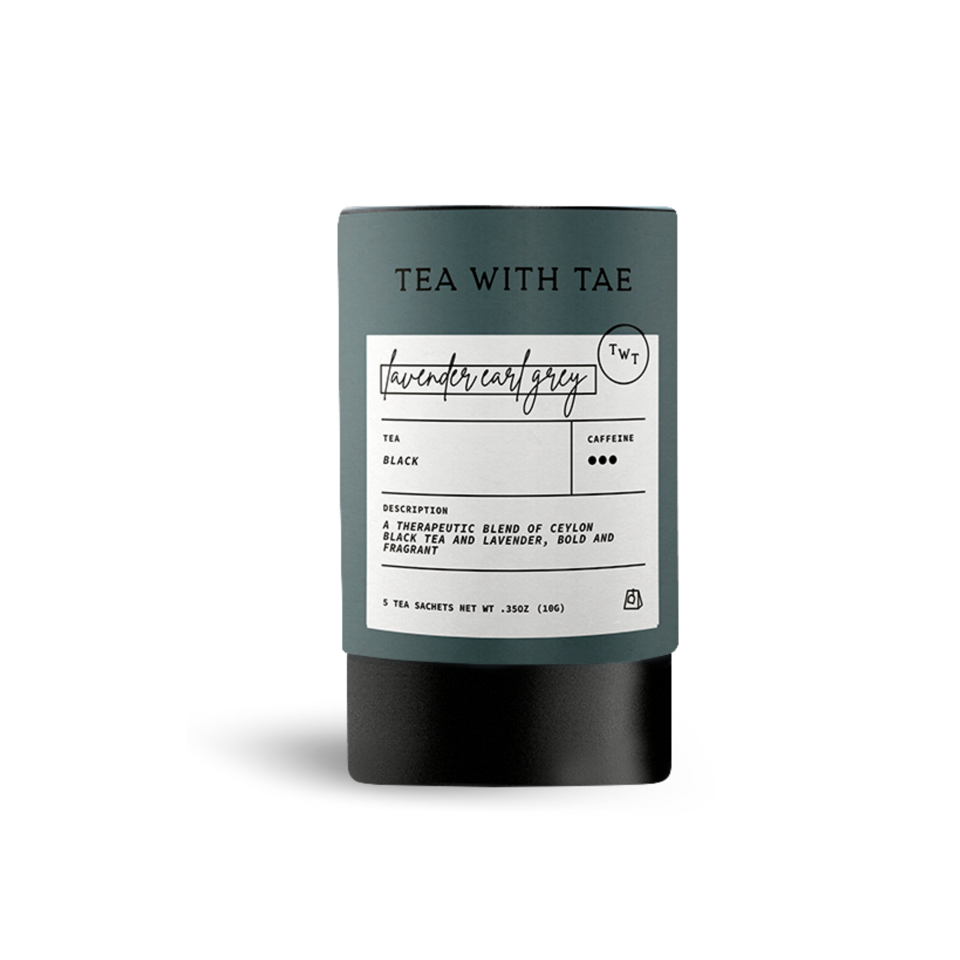 LAVENDER EARL GREY: Our take on a timeless classic. A therapeutic blend of Ceylon black tea leaves, bergamot oil, blue lavender flowers, and orange peel. Drink it alone or use it as a base to make our famous Lavender London Fog.