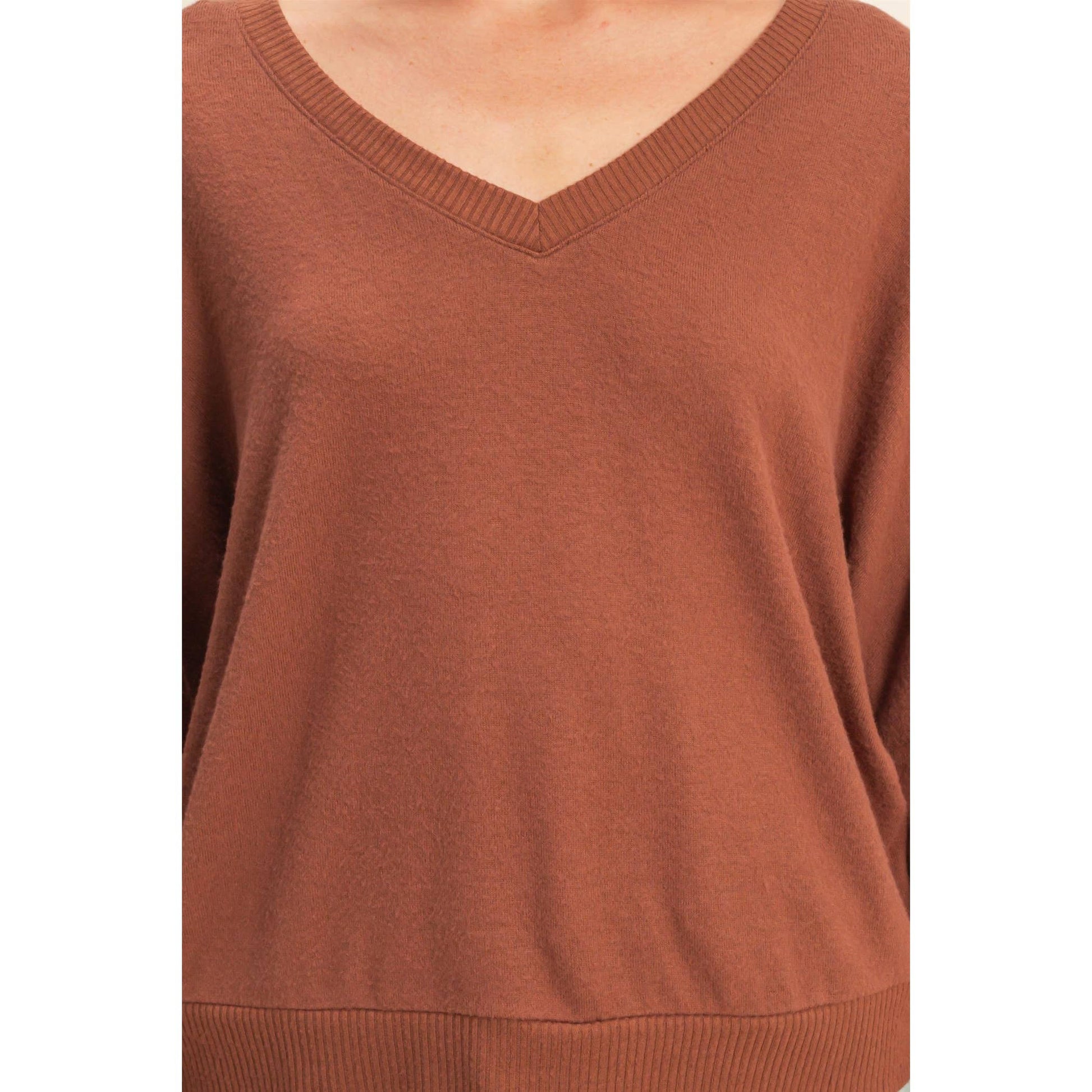 Valerie V-Neck Lighweight Sweater: Chestnut